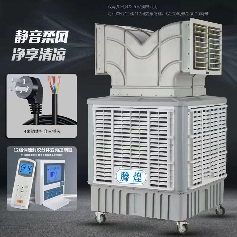 很多生產(chǎn)車間工作人員較密集、流動性大,導(dǎo)致車間內(nèi)非常悶熱,為了達(dá)到良好的通風(fēng)、降溫效果一般采用整體降溫方案。騰煌環(huán)保水冷空調(diào)常用機(jī)型18000風(fēng)量機(jī)型使用在人員密集的高溫車間,使用面積為100平方米一臺,如果車間面積大,可組合式使用,按100平方米一臺計算即可