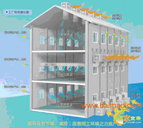 就是根據(jù)自然界水蒸發(fā)吸熱、負(fù)壓通風(fēng)降溫的原理,在封閉的車(chē)間一面墻安裝風(fēng)機(jī),另一面墻安裝降溫水簾。風(fēng)機(jī)轉(zhuǎn)動(dòng),室內(nèi)形成負(fù)壓,一方面迅速排走車(chē)間內(nèi)的熱氣、廢氣、污氣、粉塵和異味,另一方面,循環(huán)水自上而下流經(jīng)水簾,在水簾紙表面形成水膜,負(fù)壓產(chǎn)生的風(fēng)快速穿過(guò)水簾紙時(shí),水膜中的水會(huì)吸收空氣中的熱量而蒸發(fā),使經(jīng)過(guò)水簾進(jìn)入室內(nèi)的空氣降低了溫度,從而使車(chē)間達(dá)到一個(gè)通風(fēng)降溫的舒適環(huán)境。