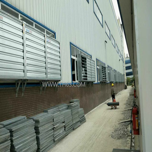 在廠房窗戶的一端安裝上降溫水簾片/濕簾墻降溫設(shè)備,與之相對(duì)的一端安裝負(fù)壓風(fēng)機(jī),應(yīng)用負(fù)壓風(fēng)機(jī)將廠房?jī)?nèi)的熱氣抽出,在通風(fēng)散熱除塵的同時(shí),室內(nèi)外造成氣壓差,促使外界的空氣經(jīng)由降溫水簾片/濕簾墻所形成的水膜蒸發(fā)吸熱瞬間降溫,涼爽空氣便會(huì)源源不斷的吹入廠房?jī)?nèi)部,進(jìn)而營(yíng)造一個(gè)舒適、涼爽、清新的工作環(huán)境。
