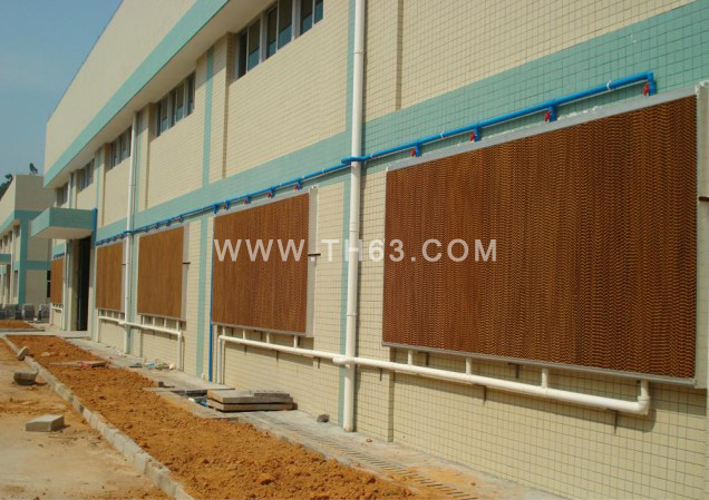水簾墻降溫系統(tǒng)利用水蒸發(fā)吸熱原理,負(fù)壓通風(fēng)原理,來排出廠房內(nèi)的廢氣、污氣及解除高溫悶熱。安裝后可以非常有效的改善廠房的高溫悶熱環(huán)境,可使廠房內(nèi)的溫度迅速下降。