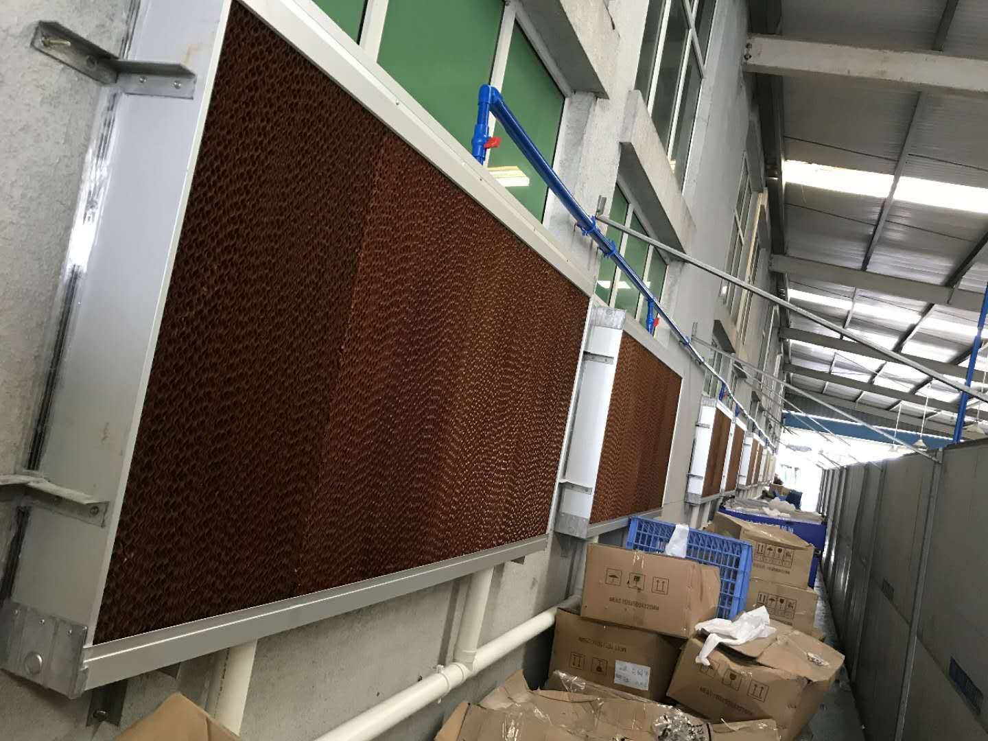 廣州通風(fēng)降溫負(fù)壓風(fēng)機(jī)主要是利用空氣對(duì)流,負(fù)壓換氣的降溫原理,由安裝地點(diǎn)的對(duì)向大門(mén)或窗戶自然吸入新鮮空氣,將室內(nèi)悶熱氣體迅速?gòu)?qiáng)制排出室外.而水簾風(fēng)機(jī)降溫系統(tǒng)是由紙質(zhì)多孔濕簾、水循環(huán)系統(tǒng)、風(fēng)扇組成。未飽和的空氣流經(jīng)多孔、濕潤(rùn)的濕簾表面時(shí),大量水分蒸發(fā),空氣中由溫度體現(xiàn)的顯熱轉(zhuǎn)化為蒸發(fā)潛熱,從而降低空氣自身的溫度。風(fēng)扇抽風(fēng)時(shí)將經(jīng)過(guò)濕簾降溫的冷空氣源源不斷的引入室內(nèi),從而達(dá)到降溫效果。